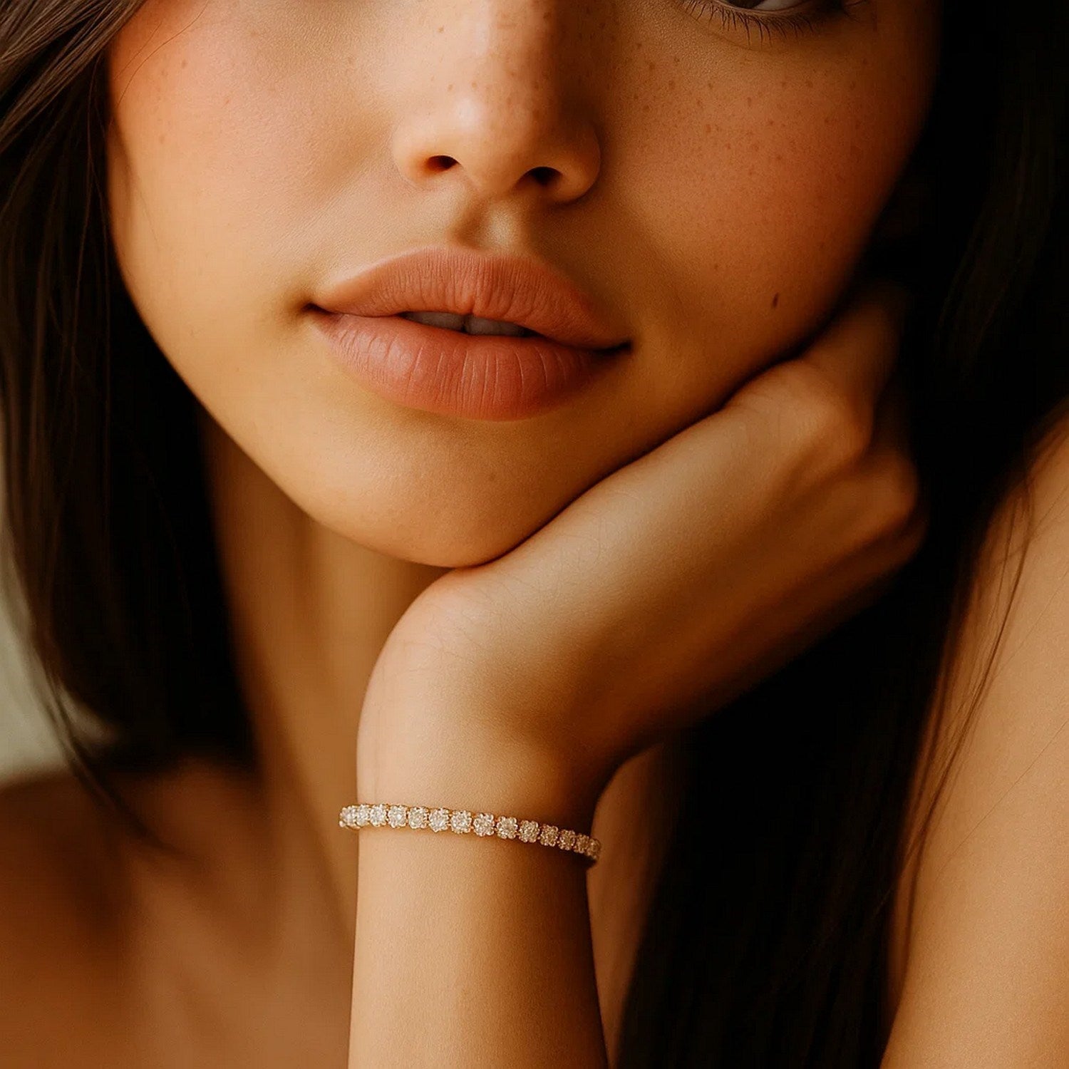 Classic four prong 4 carat total weight diamond tennis bracelet showcasing perfectly matched brilliant round cut lab grown diamonds set in 14k yellow gold.